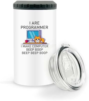 Programmer Cat Coding funny for Developer Coder Software engineer Computer scientist 16Oz Can Cooler Tumbler