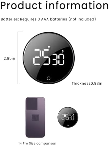 1PC Rotating Magnetic Kitchen Timer - Digital Countdown Timer with Large Display for Cooking, College, Baking & Classroom (2.95 Inch)