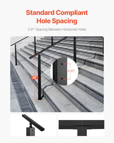 VEVOR Cable Railing Post, 36"x2"x2" Deck Railing Post, Black Stair Post with 30° Pre-Drilled Holes, Stainless Steel Cable Railing System Kit for Indoor Outdoor Deck Balcony,1JZLGZXHS914YIVIS001V0