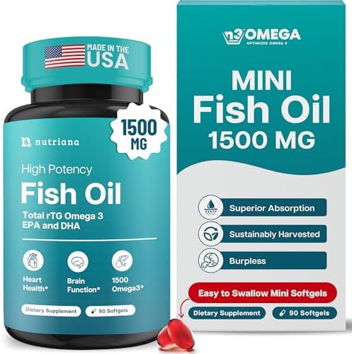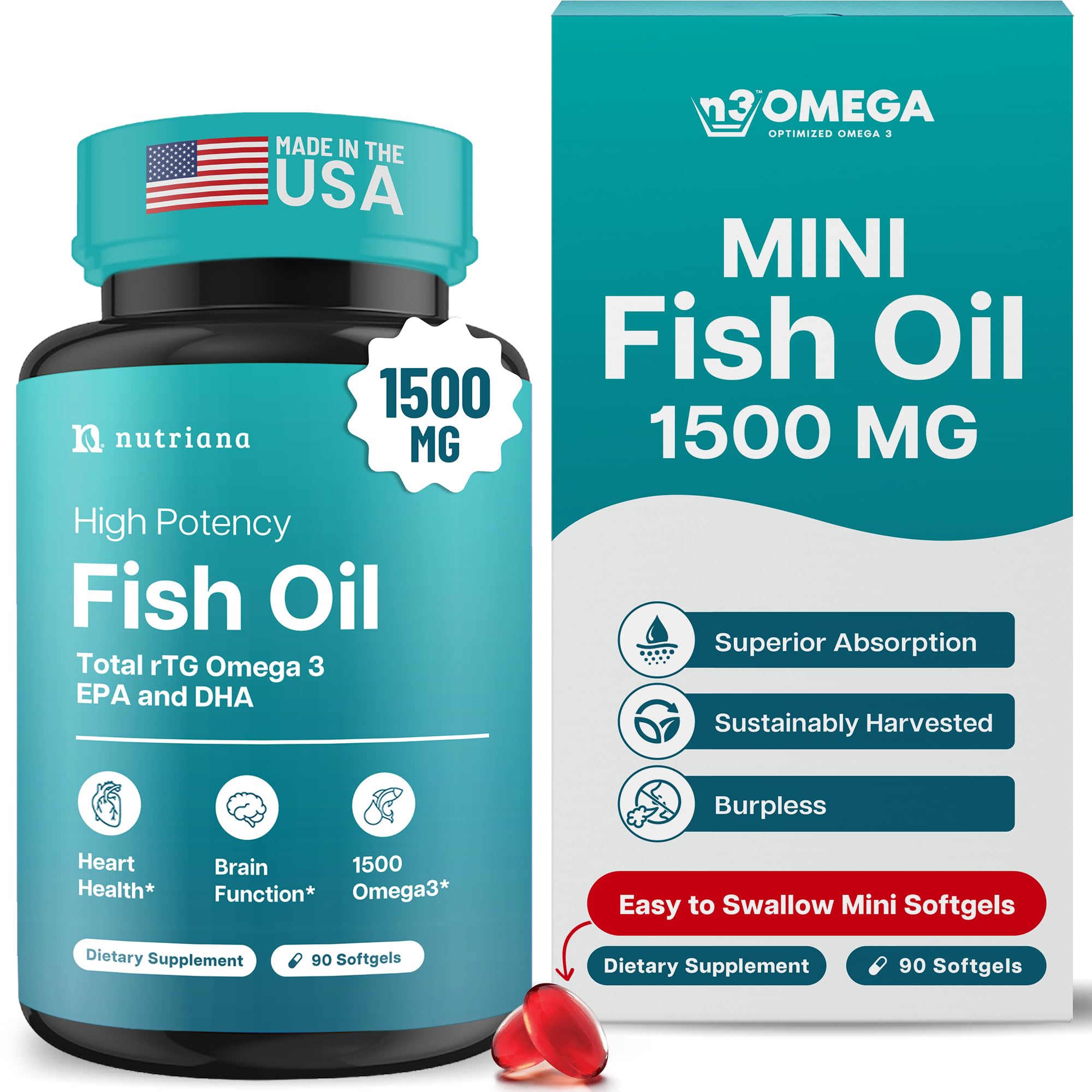 - ADVANCED & HIGH POTENCY OMEGA 3 MINI FISH OIL Softgels - Standing out against traditional omega 3 supplements on the market, Nutriana High Potency Fish Oil Pills contain 1500mg of superior bioavailable rTG Omega 3 per serving. This fish oil omega 3 fish oil minis is formulated with a potent ratio of 800mg EPA + 600mg DHA, providing your body with all its needs for every dose.