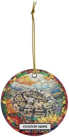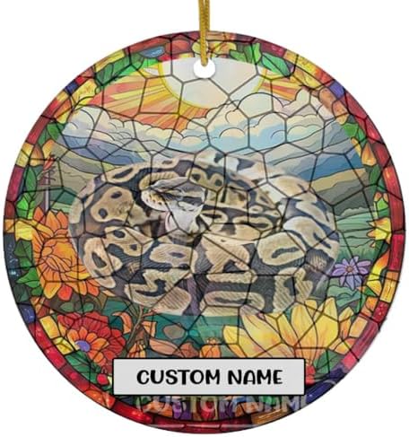Personalized Gray Ball Python Ceramic Circle Ornament - Custom Name with Stained Glass Style Artwork - Christmas Tree Decoration Gifts for Python Lovers