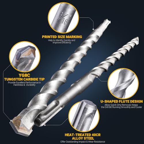 - 【SDS Plus Shank & Widely Compatible】Compatible with most brands of SDS Plus electric hammer drills on the market. The SDS plus bits can be quickly replaced and provide stable and precise operation for DIY and home projects. The sturdy head is ideal for high-impact applications. The SDS plus bit is used with the electric hammer drill to drill, cut and groove in concrete, masonry and bricks.