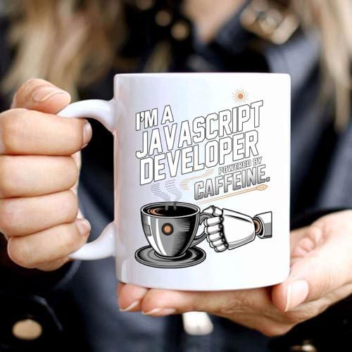 Gift Idea Funny Gift for a Javascript Developer, I'm a Javascript Developer Powered by, Present for Coworkers, Friends 11 Oz White Ceramic Coffee Mug