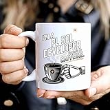 Humorous Gift Idea Funny Gift for a Pl Sql Developer, I'm a Pl Sql Developer Powered by, Present for Coworkers, Friends 11 Oz White Ceramic Coffee Mug