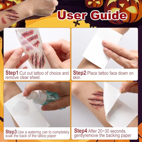 - 【Practical and safe】Our Halloween Scar Tattoos Stickers Waterproof, safe, gentle, non-irritating to the skin, chest, neck, arms, legs any part you like.