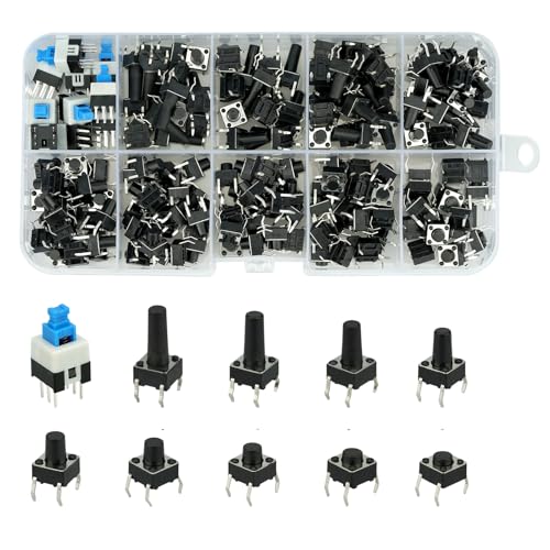180 Pcs 10 Values Tactile Push Button Switch Momentary Kit 6x6mm Compatible with arduino