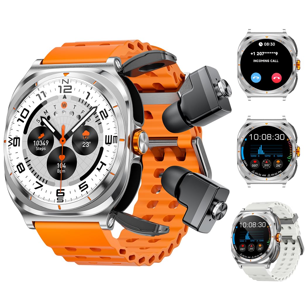 Smartwatch with Earbuds(Answer&Make Calls) IP67 Water Resistant Watch(2 Straps), Sports Watches 100+ Sports Modes (Cycling/Fitness/Hiking), DIY Watch Faces for Men Dad Husband