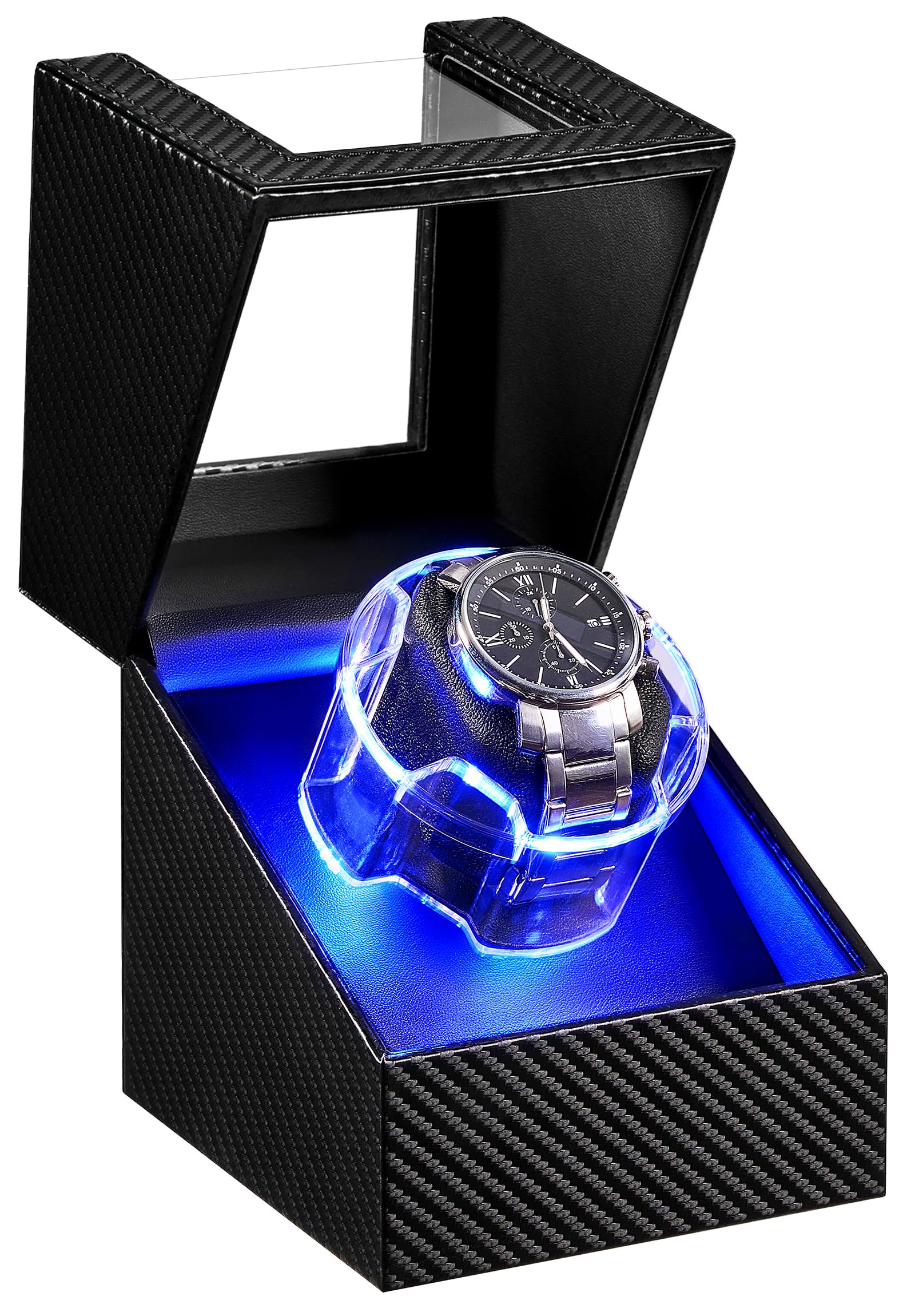 ANWBROAD Watch Winder for Automatic Watches, 4 Modes Double Automatic Watch Winder box with LED Crystal Design, Rotating Watch Case with Super Quiet Motor with Type-C Adapter UJWW007C
