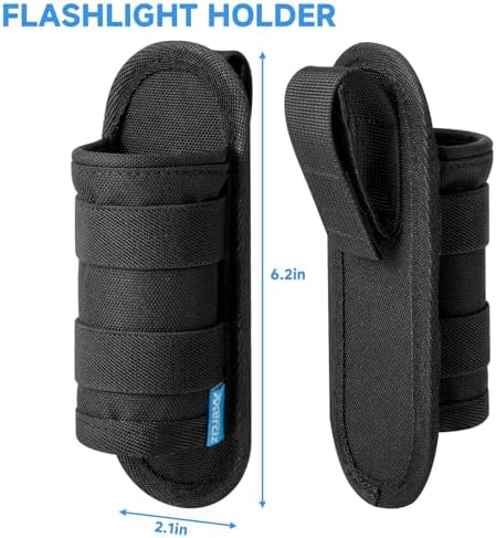 - Portable: The flashlight holder is compatible for vertical carrying. The molle strap can be easily attached to a belt, backpack. Keep your flashlight in well organised and not easy to fall off.