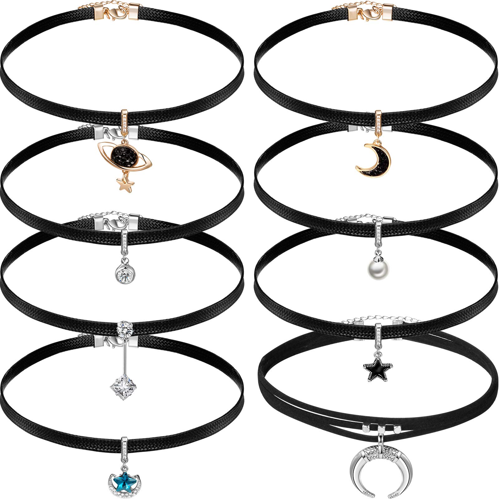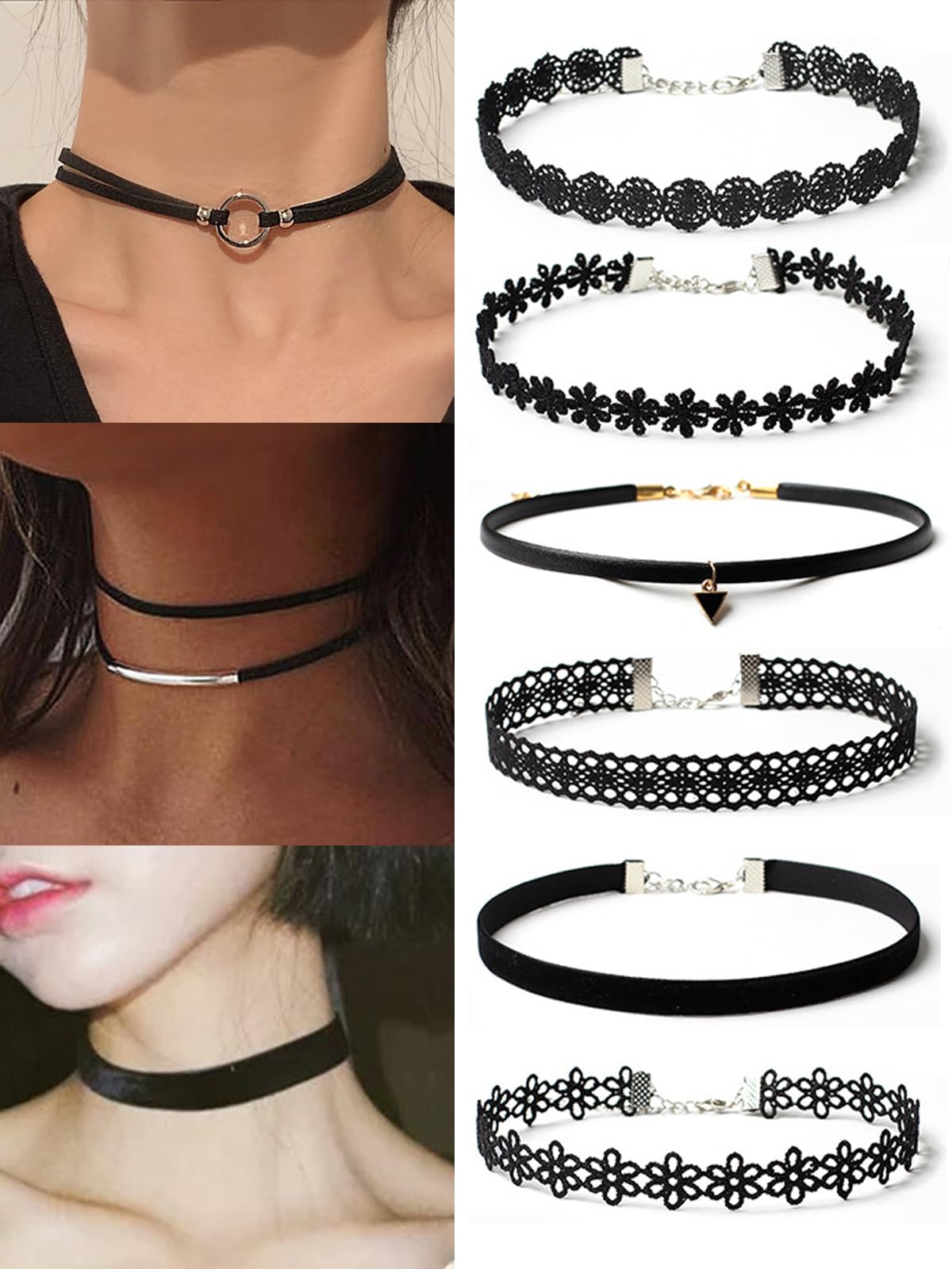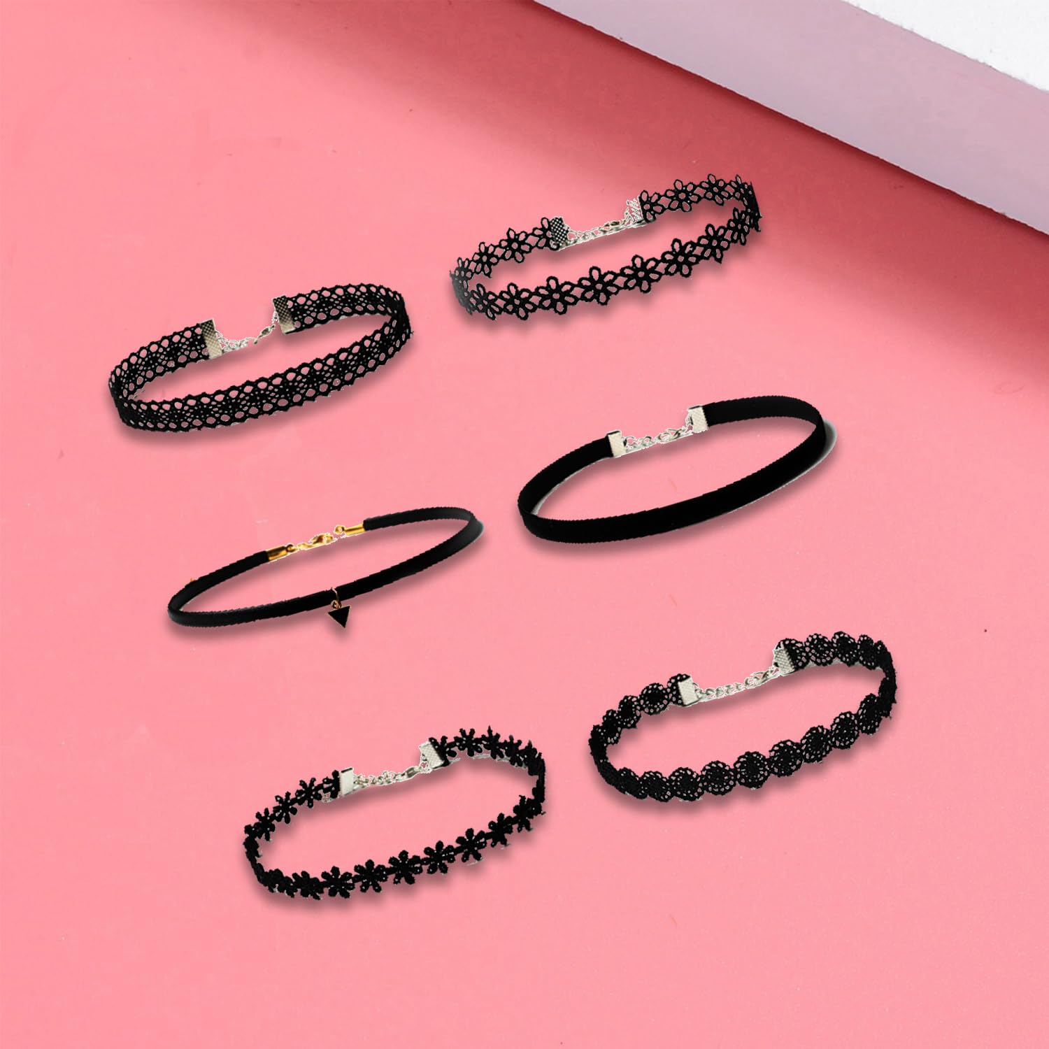 8PCS Choker Necklace for Women Girls, Black Lace Velvet Chockers, Daisy Gothic Punk Classic Choker, Adjustable Bohemian Flower Floral Lace Necklaces, Leaf Pendant Clavicular Chain for Party