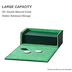 [Large Dice Capacity] Holds 30+ counter dice (15 mm). [Cards Mode] Carry 30+ double-sleeved cards when not loaded with dice. [Snap-On Mount] Magnetic attachment to Adventurer’s back panel (external). [Built-in Life Tracker] Manage life/energy/counters quickly and cleanly. [Travel-Ready & Tidy] Keep essentials organized off the playmat; perfect for EDH.