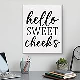 Rustic Bathroom Wall Decor - Cute Hello Sweet Cheeks Canvas Wall Art - Funny Canvas Painting Pictures Print Sign Artwork Ready to Hang for Home Bathroom 8x10 Inch