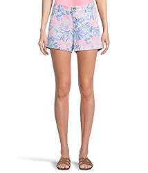 - Experience the perfect harmony of style and comfort with the Lilly Pulitzer Women's Callahan Stretch Floral Print Shorts. These floral shorts for women are ideal for any casual occasion, capturing the spirit of summer with their vibrant allover floral print. Crafted from a premium blend of 98% cotton and 2% spandex, these women's printed shorts offer a comfortable stretch, ensuring ease of movement whether you're at a beachside escapade or a leisurely brunch. The low-rise waist with belt loops, combined with a zip-fly and button closure, provides a secure fit while the two front slash pockets and two back welt pockets add functionality, allowing you to keep essentials close without compromising on style. Designed with a classic fit, these floral shorts women love add a touch of sophistication to any look, making them perfect for casual outings or social gatherings. Machine washable for hassle-free care, they are a versatile wardrobe staple for those who appreciate style intertwined with comfort. Elevate your ensemble with the floral drawstring shorts that seamlessly fit into any lifestyle, bringing a hint of floral charm to your everyday wear.
