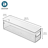 SMART STORAGE - The iDesign Plastic Fridge Bin corrals kitchen essentials in modern style; Its open-top design allows for easy accessibility, simplifying item location and retrieval; From cabinets to countertops, the crystal-clear construction brings a hint of luxury to your daily routine while keeping clutter under control by conveniently storing an assortment of kitchen or pantry essentials; Set of 6 STACKABLE - Perfectly sized for most counter-depth refrigerators and freezers, its stackable design offers a practical solution for storing your most reached-for food items while conserving space; Its transparent construction offers unobstructed views of food items like fruit cups, yogurt pouches, and canned goods; Two comfortable carry handles make it easy to transport around the kitchen or throughout the home with ease EASY ORGANIZATION - Not just limited to the kitchen, this all-purpose catchall organizes an array of household odds and ends, including toys and small figurines in the playroom, work or craft supplies in the office, toiletries in the bathroom, and more QUALITY CONSTRUCTION - Made of BPA-free plastic that is shatter-resistant; EASY CARE - Clean with mild soap and water; Do not place in the dishwasher MADE TO FIT - Fridge bin measures 14.4" x 3.9" x 3.9" high