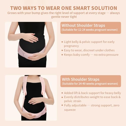 - Ergonomic Pregnancy Protection: Designed to wrap around your growing belly, this maternity belt wraps under your bump, lifts gently with adjustable shoulder straps, and supports your back. The flexible fit adapts to every stage of pregnancy, effectively reduces strain, improves posture, and evenly distributes your baby’s weight for enhanced comfort and stability