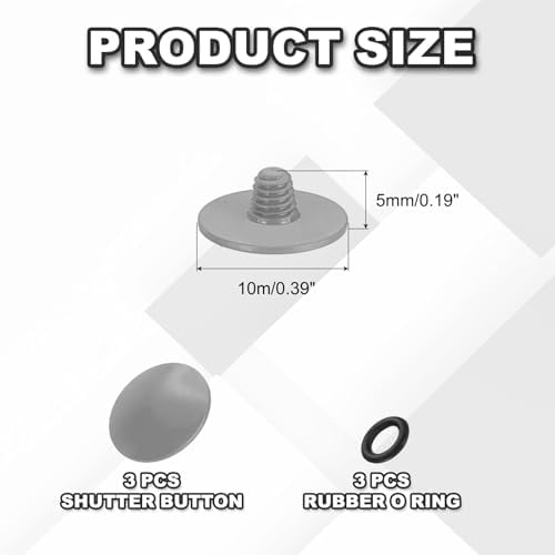 - Color: Gray; Thread Diameter: 3mm / 0.12 inch; Total Size: 10 x 5mm / 0.39 x 0.19 inch (D*H); Packing List: 3 x Shutter Buttons, 3 x Rubber O Rings