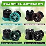 Honoson 16 Pcs Variable Arc Nozzle Radius High Efficiency Replacement Pop up Sprinkler Heads Compatible with Rainbird, Hunter, Orbit Pop-up Sprinklers (4/8/12/15 Van,Green,Black,Brown)