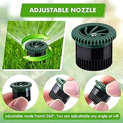 Adjustable Nozzle: with adjustable patterns from 0 to 360 degrees, slightly twist the textured center collar, you can increase or decrease the pattern; Ideally, for example, at a pressure of 2.1 bar, the maximum spraying radius of a 4van nozzle is about 3.94 ft/ 1.2 m, 8van nozzle is about 7.87 ft/ 2.4 m, 12van nozzle is about 12.14 ft/ 3.7 m, 15van nozzle is about 15.09 ft/ 4.6 m Uniform Water Spray: these variable arc nozzles can provide a good close range watering throughout the spray pattern, could evenly cover the water where needed; Please note: adjusting the nozzle can only cover the spray angle, cannot automatically adjust the water pressure to adjust the spray range Efficient and Time Saving: the average water output of replacement pop up sprinkler head reaches more than 70 percents, which is more than 40 percents higher than the existing variable arc nozzle, and the area running time is greatly shortened; Please note: the spray range is related to the water pressure Save Water and Energy: in addition to saving water, our replacement pop up sprinkler heads can also save energy and reduce system wear, they are made of POM material, durable enough to ensure a long service life What You Will Get: there are 16 pieces 4, 8, 12, 15 VAN replacement pop up sprinkler heads, each size is 4, the quantity is enough for your replacements and daily use