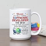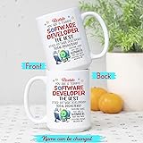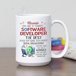 - Personalized Coffee Cup Gift For Software Engineer/ Programmer/ Coder, You Are A Terrific Software Developer The Best White Mug, Customized Name Programmer Coding Programming IT Coffee Mug 11Oz 15Oz ☛ If you’re still looking for an awesome and unique gift, this personalized You Are A Terrific Software Developer The Best coffee mug is the perfect choice for your loved ones. CUSTOMIZATION is a great way to add a personal touch to a gift when giving it to someone. Every time they use this personalized travel ceramic coffee mug, they’ll think of you.✔ SIZE & FEATURES: White ceramic mug with a solid cup bottom, thick cup walls, an anti-slip design, and a C-shaped handle for an easy, comfortable grip. This mug comes in two sizes: 11 oz, which is the standard coffee mug size, and 15 oz, perfect for those who prefer a larger cup. Ideal for daily use at home or in the office.✔ HIGH-QUALITY COFFEE CUP: High-quality ceramic coffee mug with a professionally printed design on both sides, ensuring that the unique graphic is visible whether you're right- or left-handed. We use the latest print technology, so the design will not peel or fade over time. Our ceramic mugs are microwave-safe for heating beverages and can be cleaned in the dishwasher or by hand.✔ BEST MUG GIFT EVER: This awesome coffee mug makes a perfect mug gift for Birthday, Christmas, Anniversary, Retirement, Appreciation, Thanksgiving, New Year, Graduation, and more. A thoughtful gift for Programmer, Software Developer, Coder, Women, Men, Friends, Coworker, Boss, Daughter, Son, Student, Boyfriend, Girlfriend, Dad, Mom, Him, Her, Brother, Sister, or any loved one.☛ If you have any questions about your purchase or anything else, please contact us. Making you satisfied is our priority.