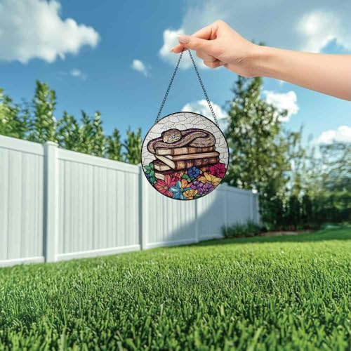 Stained Glass Python and Books Ornaments Suncatcher - Python Decor Gifts for Women Men Animal Lovers - Window Hanging Decorations for Home Wall Kitchen - Christmas Birthday Housewarming Gift