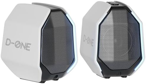 D-ONE 30W PC Gaming Computer Speakers for Laptop, Mac, Desktop Computer, Woofer Speakers, Bluetooth, USB, 3.5mm AUX Inputs, RGB Lights, Multimedia Speakers, White