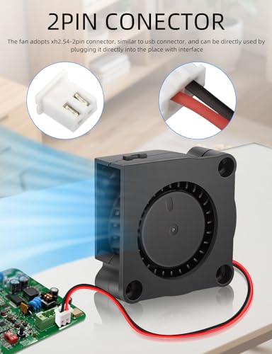 - XH2.54-2 Pin Connector: This small blower fan features a red positive (+) wire and a black negative (-) wire. The wire length is 7.87 inches. It operates on a voltage range of 14 to 26V. Operating above 26V may reduce the fan's lifespan