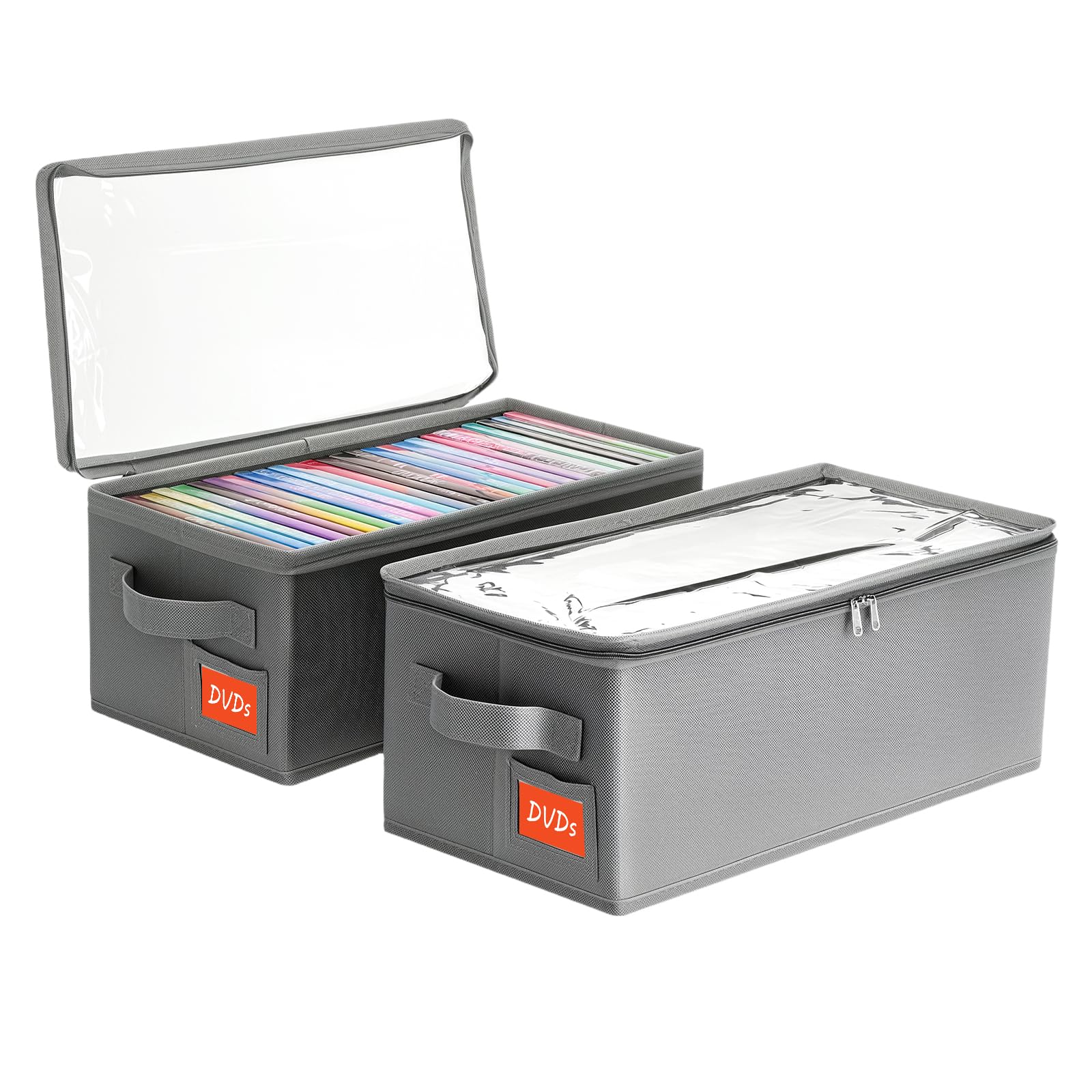 - 【Stackable & Dustproof Design】 Securely stack these cd holders storage cases to save space in cabinets or on shelves. The snug-fit media box lid keeps your collection dust-free and protected.
