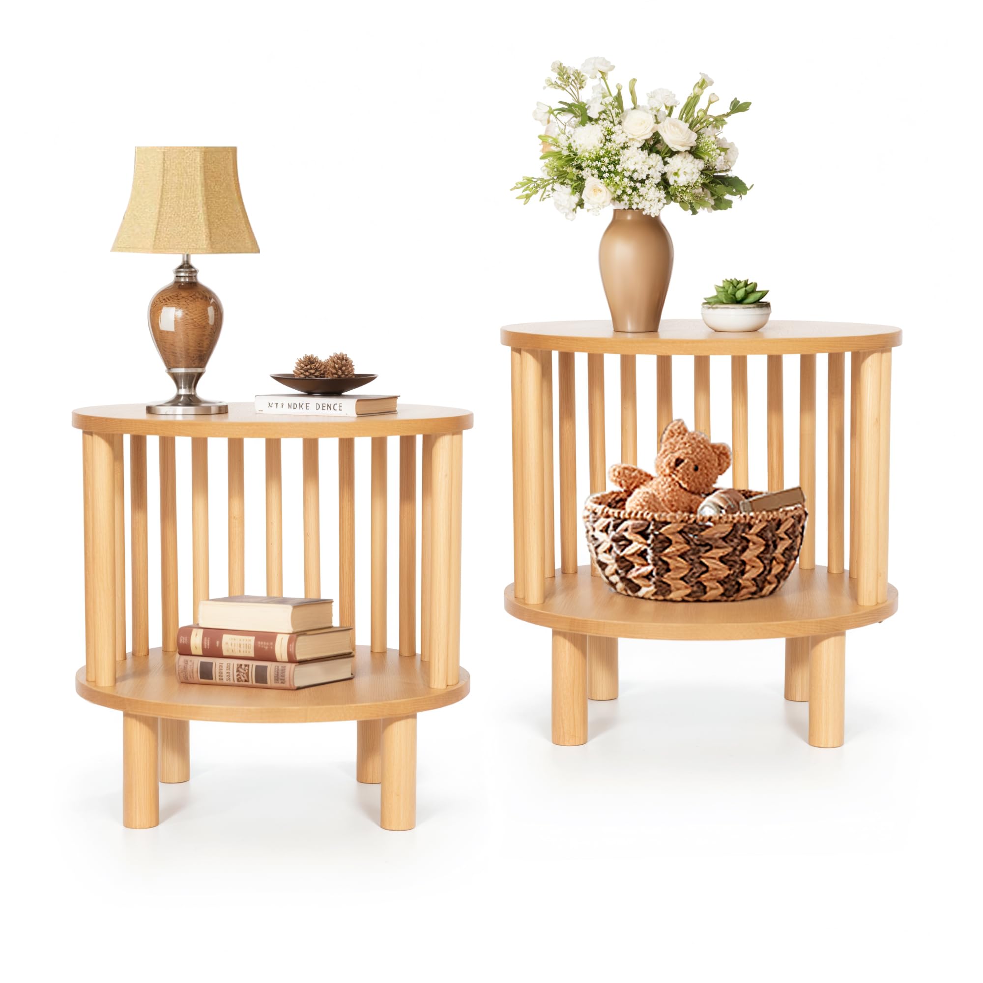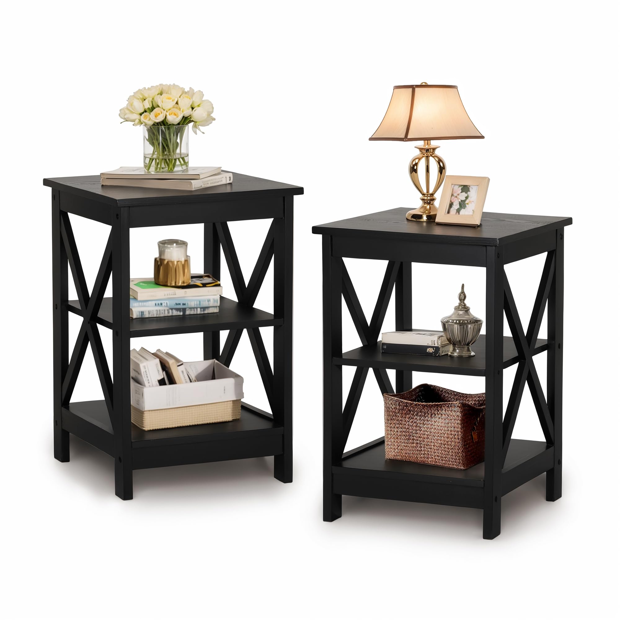 - 【3 Tier Shelf & End Table Set of 2】The table size is 23.6"D x 16"W x 16"H. Perfect for beside the sofa or in your living room . It can accommodate Alarm clock, succulent pots, decor stuff, books, and so on. The farmhouse color matches with any other furniture and gives a good look to the room