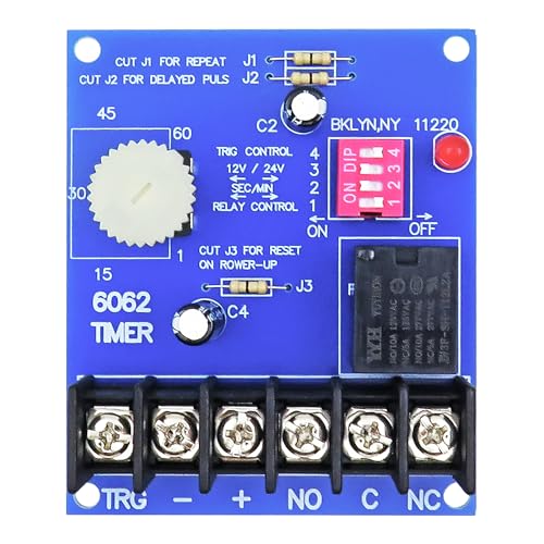 6062 Multi-Function Timer (Compatible with altronix 6062 Multi Function Timer), 12/24VDC Selectable, 1 Sec to 60 Min Adjustable Timing for Access Control and Timed Operations