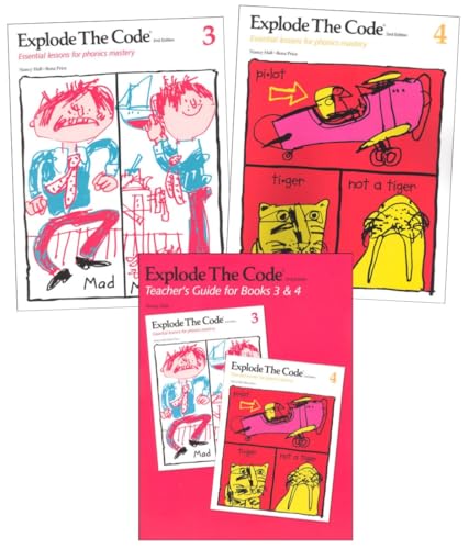 Explode the Code Series 3-Book Bundle Set (Book 3, Book 4, and Teacher's Guide for 3 & 4) - Phonics and Reading Instruction for Grades 1–3