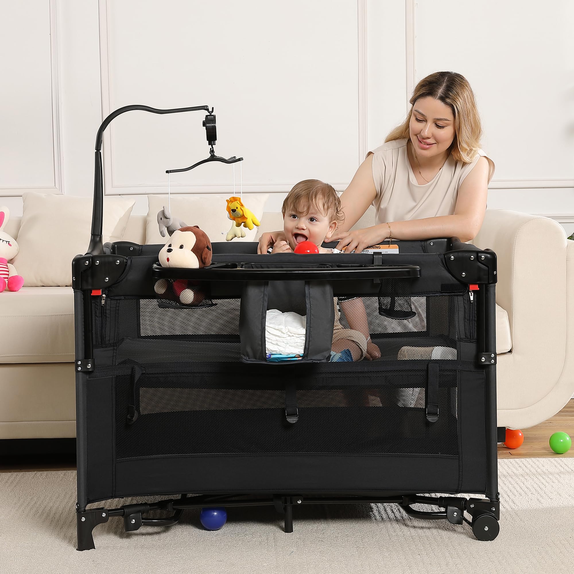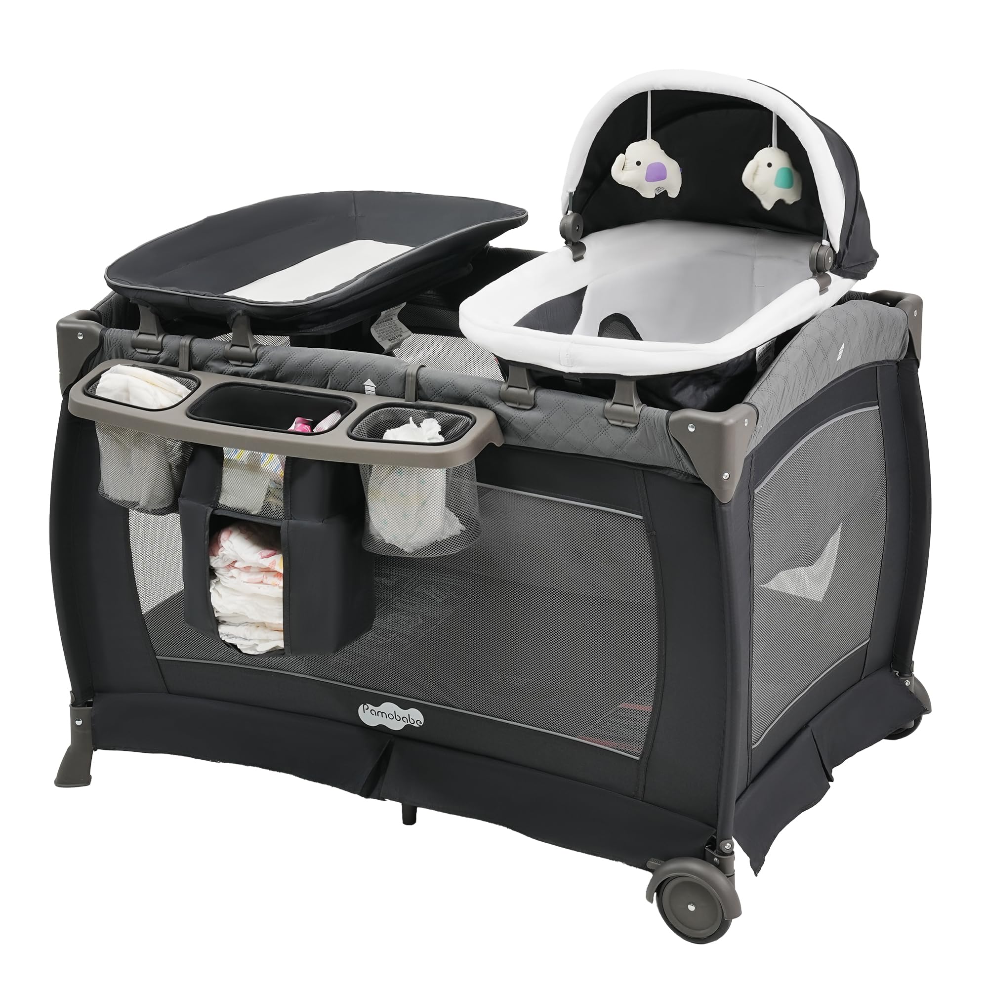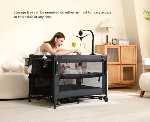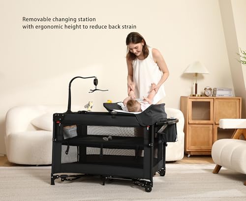 - 【Thoughtful Upgraded Features】- Removable changing station with ergonomic height to reduce back strain - Gentle rocking bassinet mode helps soothe babies to sleep - Certified child-safe, meets strict US safety standards