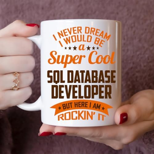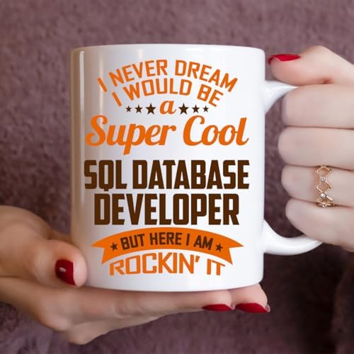 - Funny Sql Database Developer Gift for All Occasions: Celebrate the rockstar Sql Database Developer in your life with this 11oz ceramic mug featuring the hilarious quote, I Never Dreamed I Would Be A Cool Sql Database Developer But Here I Am Rockin It. Perfect for birthdays, graduations, or coworker appreciation gifts!