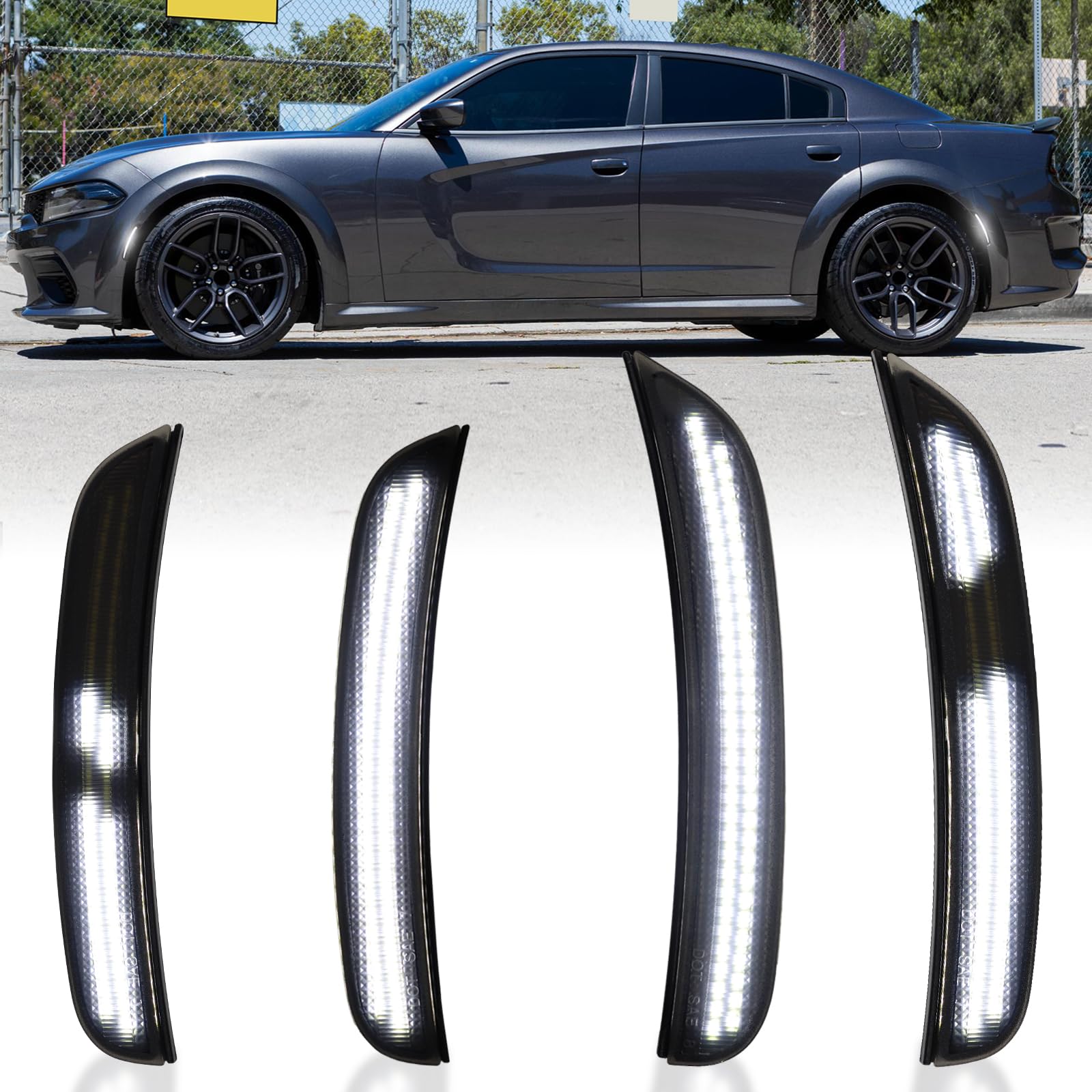 - Package Includes: One pair (driver and passenger sides) trendy dark smoked lens amber scrolling sequential LED front fender side marker lights