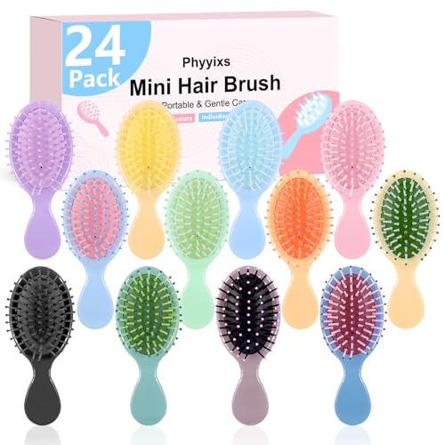 24 Pack Mini Detangling Brushes - 12 Colors for Wet & Dry Hair, Compact Travel Hairbrush for Teens & Adults, Perfect for Bridesmaid Gifts, Party Favors & Stocking Stuffers