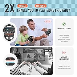 WHEEL TWIN PACK:This set includes 2x sleek black steering wheel attachments for your Switch 2 JoyCons, allowing for a more authentic driving experience in your favorite racing games like Mario Kart and more. ERGONOMIC DESIGN:Designed for comfort, the JDDWIN steering wheels enhance your gaming sessions by reducing hand fatigue, making it easier to enjoy long races without discomfort. DURABLE ABS MATERIALS: Crafted from high-quality ABS plastic, these steering wheels are lightweight yet robust, safeguarding your Switch 2 JoyCons from bumps and scrapes during intense gameplay. COMPATIBILITY: The steering wheels perfectly fit Switch 2 JoyCons, ensuring an improved grip and seamless functionality with popular racing games such as Street Racer, Gear Club, and Sonic Racing for an exhilarating play experience. SENSITIVE RESPONSE BUTTONS:Featuring a raised design on the SL and SR buttons, our steering wheel ensures precise control over direction, enhancing your accuracy in high-speed races for that thrilling edge you need in competitive gaming. Note: Switch 2 JoyCons controllers are not included