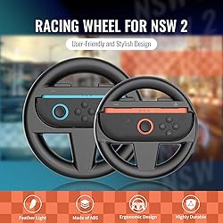 - Elevate your racing game experience with the JDDWIN Steering Wheel for Switch 2 JonCons Controller! This premium 2 pack includes two black wheel attachments designed specifically for your Switch 2 JoyCons. Perfectly suited for popular racing titles like Mario Kart 8 Deluxe, this ergonomic steering wheel not only enhances gameplay but also provides a comfortable grip to minimize hand fatigue. Made from high-quality ABS plastic, these wheels are lightweight yet incredibly durable, offering protection for your controllers while delivering a truly immersive driving experience. Get ready to rev up your gaming sessions with the JDDWIN Steering Wheel