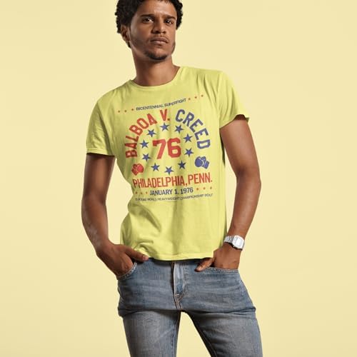 Rocky Movie T Shirt Balboa V. Creed Adult Yellow Heather Short Sleeve Boxing Film Retro Style Graphic Tee
