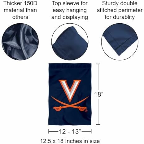 Ideal for your garden or home entrance is our garden banner flag. This double sided Garden Flag measures a large 13 in x 18 in, has a Double Stitched border, a 1 inch top sleeve, and is made of 2 ply Polyester so the logos are Viewable and Readable Correctly on Both Sides. The Screen Printed college logos are Officially Licensed and Approved by the League and school. (Flag Only, Garden Stand and Accessories Sold Separately)