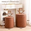 Round Ottoman with Storage Set of 2, 12.6"W x 14.17"H & 14.76"W x 17.32"H Faux Leather Button Tufted Storage Ottoman, Boucle Vanity Stool Footrest Coffee Table for Living Room, Bedroom, Brown