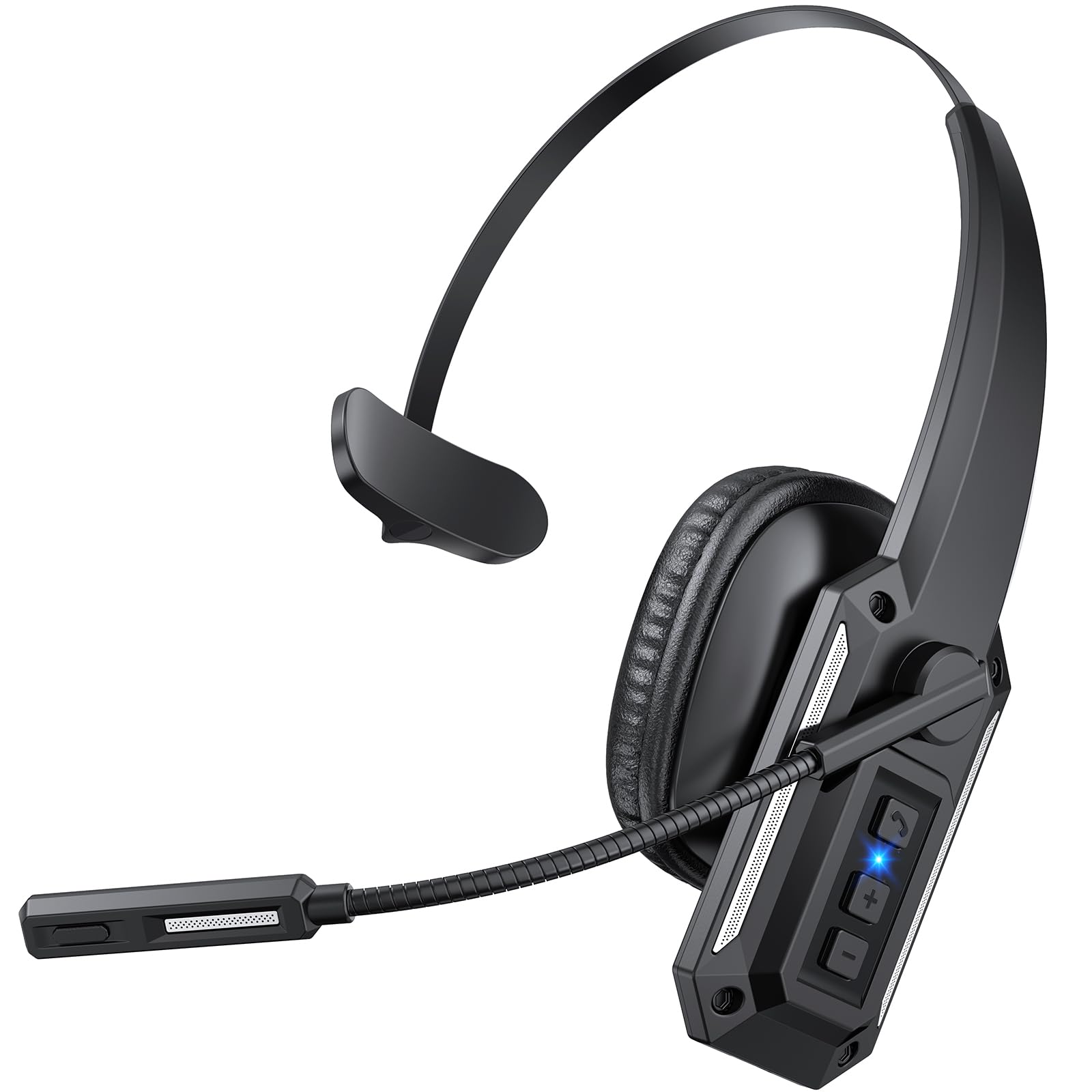 Bluetooth Headset, 60hrs Noise Canceling V5.2 Over Head Headphones, Single Ear Trucker Wireless Headset with Mic, Mute Button, Multipoint, for Phones PC Computer Truck Driver Office Work - Black