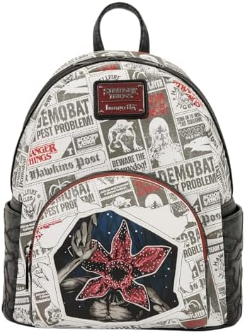 Take a trip back down to Hawkins with this new Stranger Things mini backpack! All over, you'll find clips of ads from the Hawkins Post, like a Hellfire Club ad, a Scoops Ahoy ad, a "Demobat Pest Problem!" ad, and more! Bursting out from the paper on the front pocket is a Demogorgan! This is a perfect bag for any Stranger Things fan!