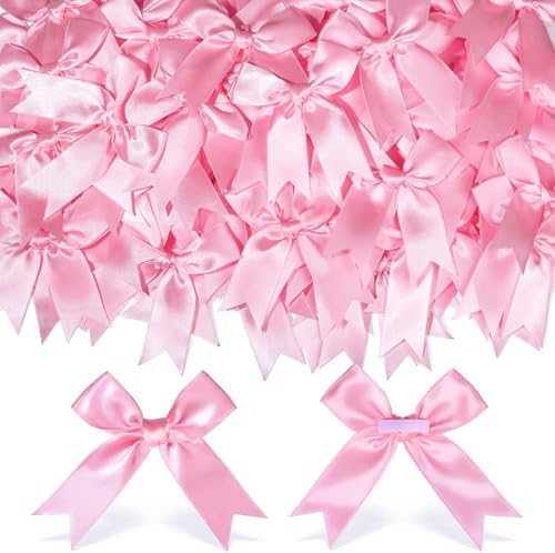 YGDZ Pink Bows, Satin Self Adhesive Pink Ribbon Bows for Crafts, Baby Pink Bow with Double-Sided Tape, Small Bows for Gift Wrapping, Wedding Decor, Party Favors