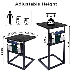 - C Shaped End Table Adjustable Height, Side Table with Storage Bag, Small Side Table for Small Spaces, Couch Tables That Slide Under, Tv Tray Table for Living Room, Black
