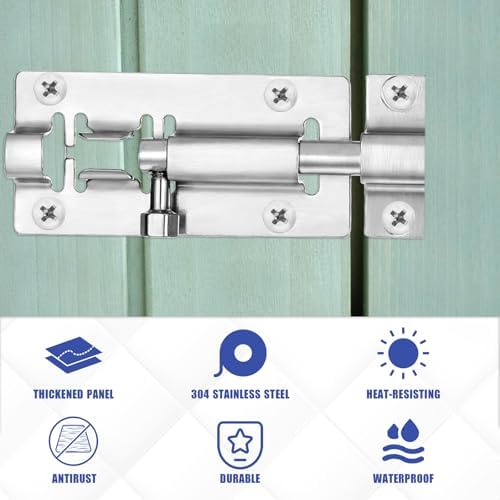 - 【Anti-Corrosion Construction】Crafted from stainless steel, these 3-inch barrel bolt latch resist rust and wear in humid or outdoor environments. The brushed finish ensures smooth operation for gates, sheds, or cabinets, maintaining structural integrity even under harsh weather conditions.