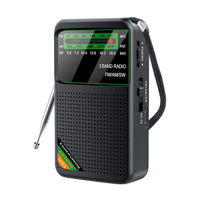 3-Band Pocket Radio, Portable AM/FM SW Battery-Operated Radio and shortwave, Made of Advanced transistors, 3.5mm Headphone Jack, Large Speaker for Both Indoor and Outdoor use