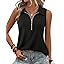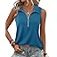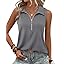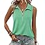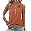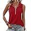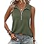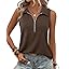 Vivilli Womens Ribbed Tank Top Zipper V Neck Dressy Casual Blouses Sleeveless Camisole Tops Work Tank Polo Shirts