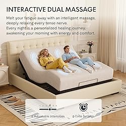 - CUSTOMIZABLE COMFORT: Enjoy the luxury of tailoring your comfort with a wide range of options. Indulge in adjustable head incline, ranging from 0 to 60°, and foot incline, ranging from 0 to 45°. Seamlessly control all functions with ease using the user-friendly wireless remote, which promptly responds to a single tap. ONLY ADJUSTABLE BED BASE INCLUDED. - MASSAGE: Massage Function: This adjustable bed frame features a massage function to provide you with the ultimate comfort. You can customize the massage intensity from a scale of 0 to 6 according to your personal preference. Additionally, you have the flexibility to choose the duration of the massage session, with options of 10, 20, or 30 minutes, allowing you to easily create a personalized relaxation experience. - ZERO GRAVITY: Experience the incredible sensation of weightlessness with the zero-gravity position, providing ultimate relaxation and stress relief following a demanding day. - DURABLE & STURDY: This adjustable bed base boasts a highly durable and sturdy design, with its motor tested to support up to 750 lbs, ensuring unmatched quality and longevity. Its six-legged structure and robust integrated steel frame provide exceptional stability, effectively preventing potential risk of tipping. Capable of accommodating a maximum weight capacity of 750 lbs, this bed frame delivers reliable and secure support. - ADJUSTABLE LEG HEIGHT: Our adjustable bed frame offers three different height options: 3'', 6 '' and 9 '', providing an optimal ergonomic solution for easily getting on and off the bed. In addition to meeting various individual needs, the adjustable bed frame also accommodates under-bed storage requirements. - MATTRESS HOLDER: Featuring a sturdy retainer bar, our adjustable bed frame securely holds the mattress in place, preventing any movement or shifting of the mattress. - BETTER SLEEP QUALITY: Enhance your lifestyle and well-being with FlexiSpot adjustable bed frame. This remarkable adjustable bed frame provides numerous advantages, including alleviating snoring, reducing back pain, minimizing swelling, enhancing heart health and breathing, and relieving symptoms of acid reflux. Embrace a restful sleep experience with the FlexiSpot adjustable bed frame. - ATTENTION: Batteries for the remote control are not included in the package; please kindly provide three AAA batteries for use.
