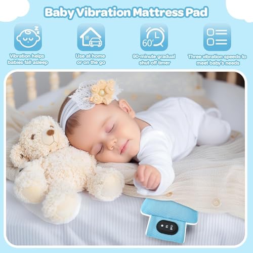 Vibrating Pad for Baby Crib, Baby Vibrating Sleep Soother, Gentle Vibrations Mattress Pad, 3 Adjustable Modes, 90-Minute Timer, Use for Bassinet/Strollers/Travel, Ideal Sleep Aid for Newborns