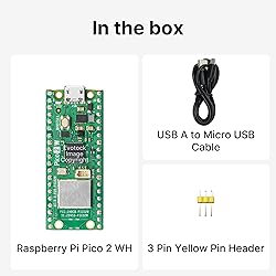 Note: The Pico 2 WH comes with no program by default, so you won’t see any lights when plugged in. Please upload a simple blink program to verify it's working. Pre-Soldered Convenience: Comes with headers pre-installed for immediate use with breadboards and other prototyping tools. Built-in Wireless Connectivity: Integrated Wi-Fi (802.11b/g/n) and Bluetooth 5.2 for seamless IoT and embedded applications. High-Performance RP2350 Chip: Dual-core Arm Cortex-M33 with FPU and Hazard3 RISC-V cores, delivering double the speed and flexibility of the RP2040. Increased RAM: Equipped with 520 KB of on-chip RAM, facilitating efficient data handling for complex applications. Expanded Flash Storage: Provides 4 MB of onboard flash memory, suitable for storing extensive codebases and data. Backward Compatibility: Maintains full compatibility with the existing Pico ecosystem, ensuring a smooth transition for users upgrading from previous models.