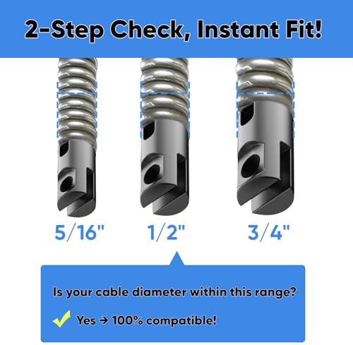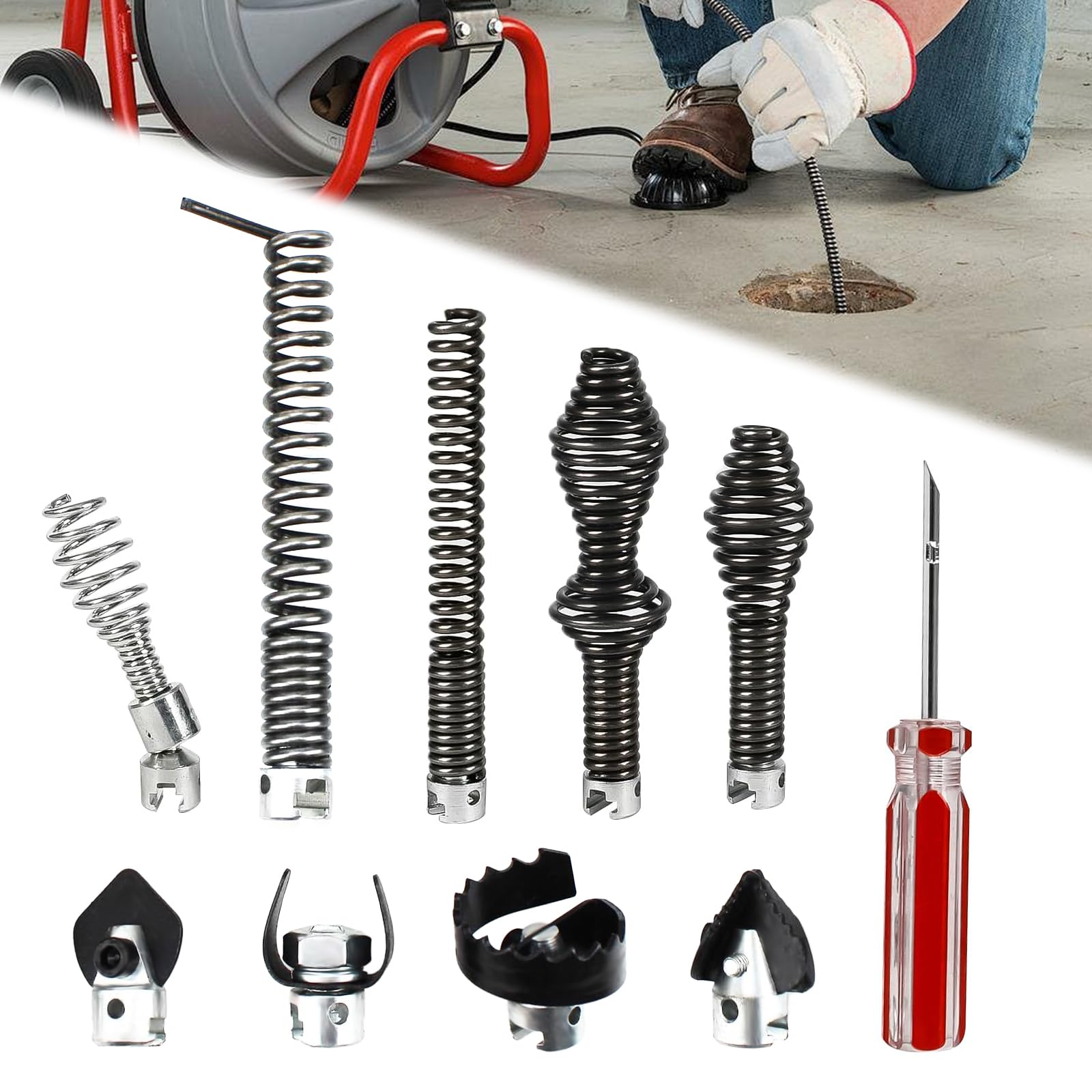 9-Piece Drain Auger Drill Attachment for 5/16”-3/4" Cable, Heavy-Duty Steel Construction, Fits 50FT-100FT Drain Machines,Rust-Resistant for Sink/Shower/Toilet Clogs